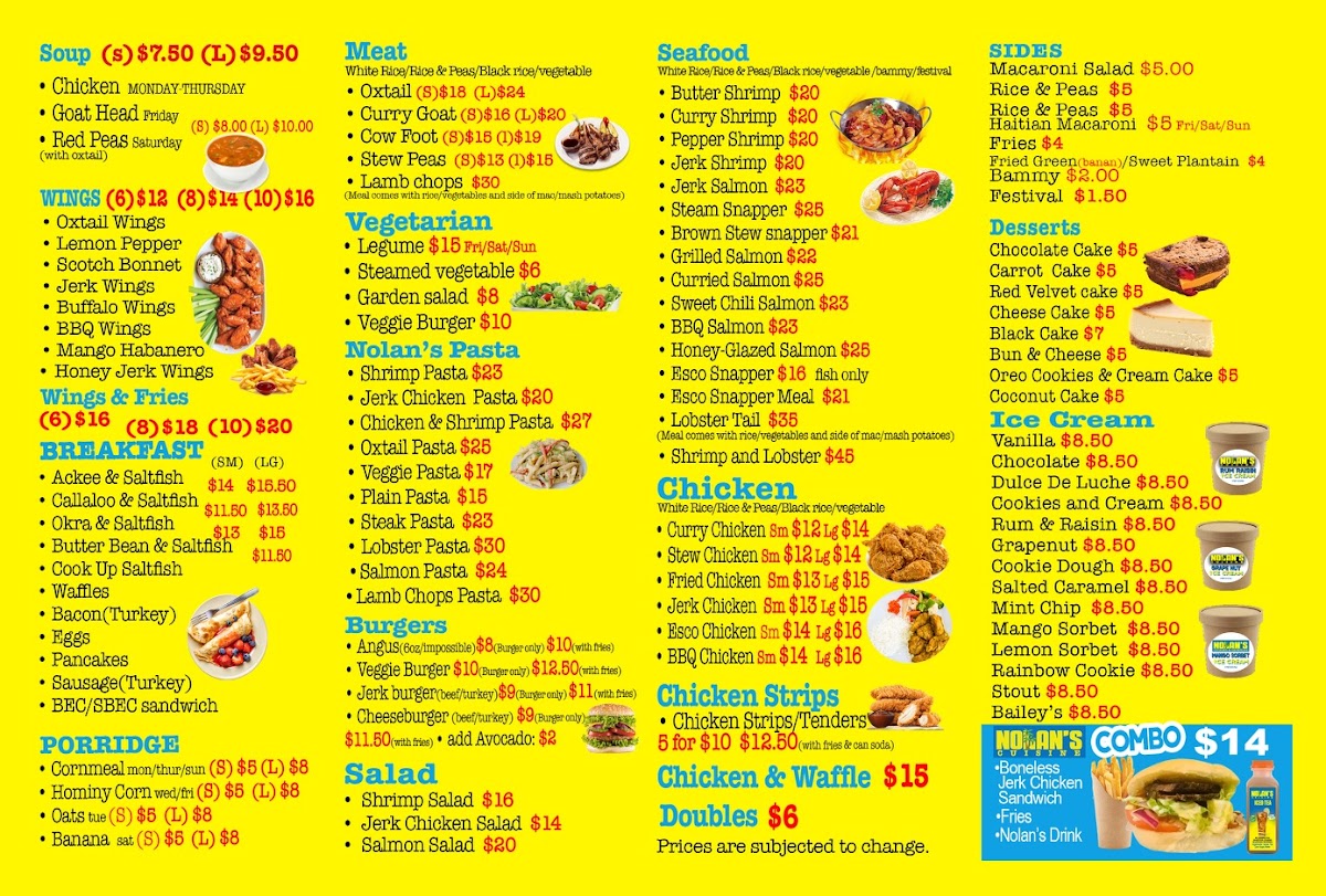 When you step into Nolan’s, you're in for a real treat. Nolan’s Cuisine Menu brings together a variety of flavors, each dish crafted to satisfy your cravings. Located at 2101 Dutch Broadway in Elmont, NY, this spot is perfect for anyone who loves fresh, flavorful meals in a cozy setting. From appetizers that get your taste buds tingling to hearty mains that’ll leave you fully satisfied, there’s something for everyone. Whether you're a fan of tender steaks, savory seafood, or mouthwatering vegetarian options, every bite is made with care and the best ingredients. And let’s not forget about their sides, which perfectly complement any main dish. If you’re in the area, it’s definitely worth stopping by to explore the menu, where every choice feels like the right one. The menu is constantly updated to bring something new to the table, making each visit feel fresh and exciting.